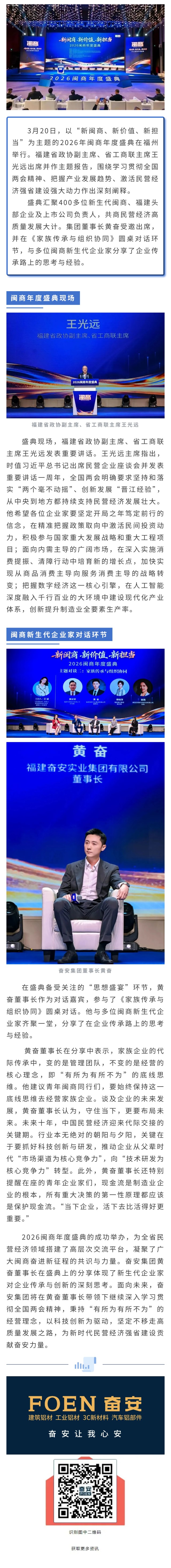思想引领 | 黄奋董事长出席2026闽商年度盛典,共话新生代传承与创新