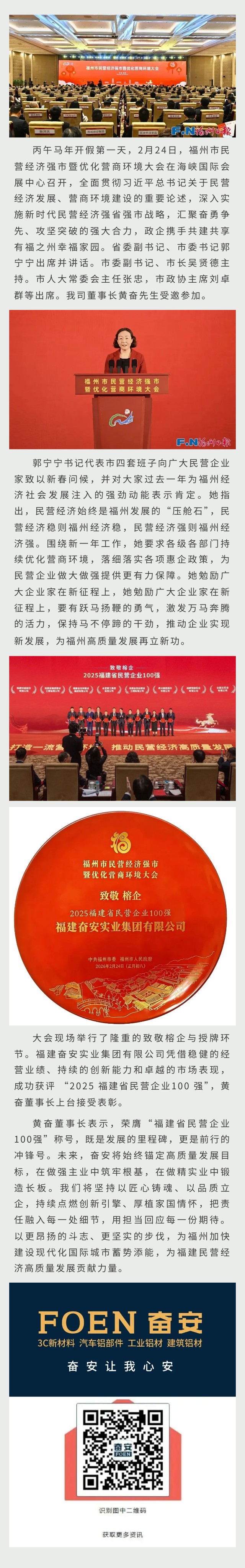 重磅喜讯|奋安上榜2025福建民企百强 黄奋董事长参会共话民营经济发展