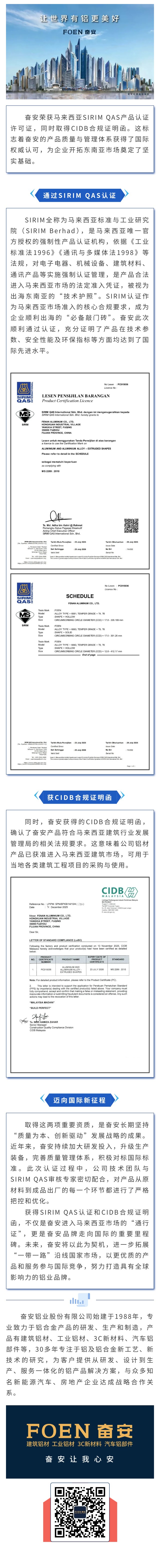 重磅 | 奋安成功取得马来西亚SIRIM QAS产品认证许可证与CIDB合规证明函